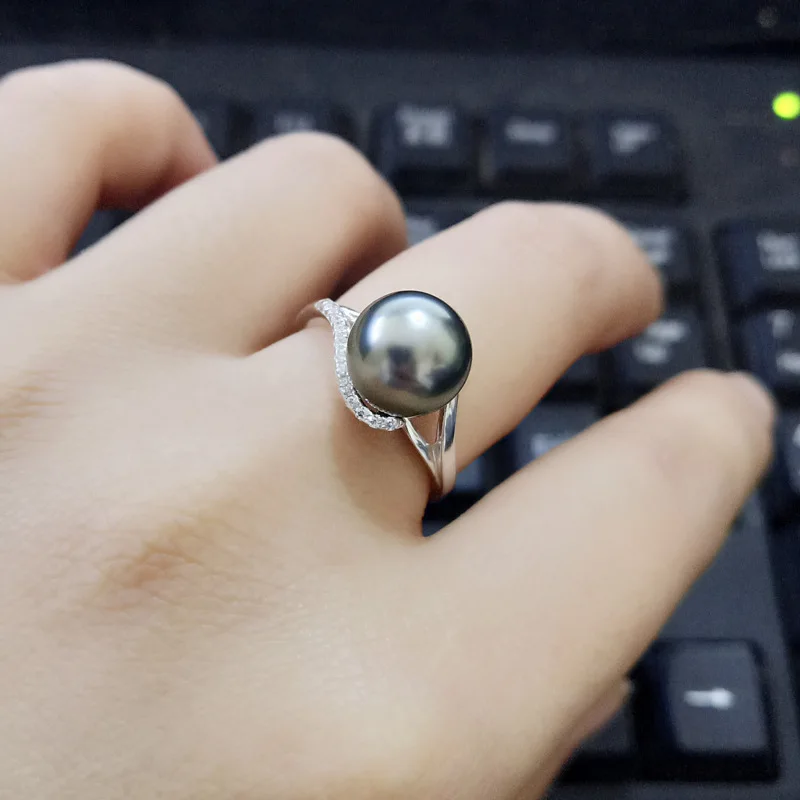 Raffinement intemporel avec la bague perle de Tahiti lumineuse, anneau couleur argent
