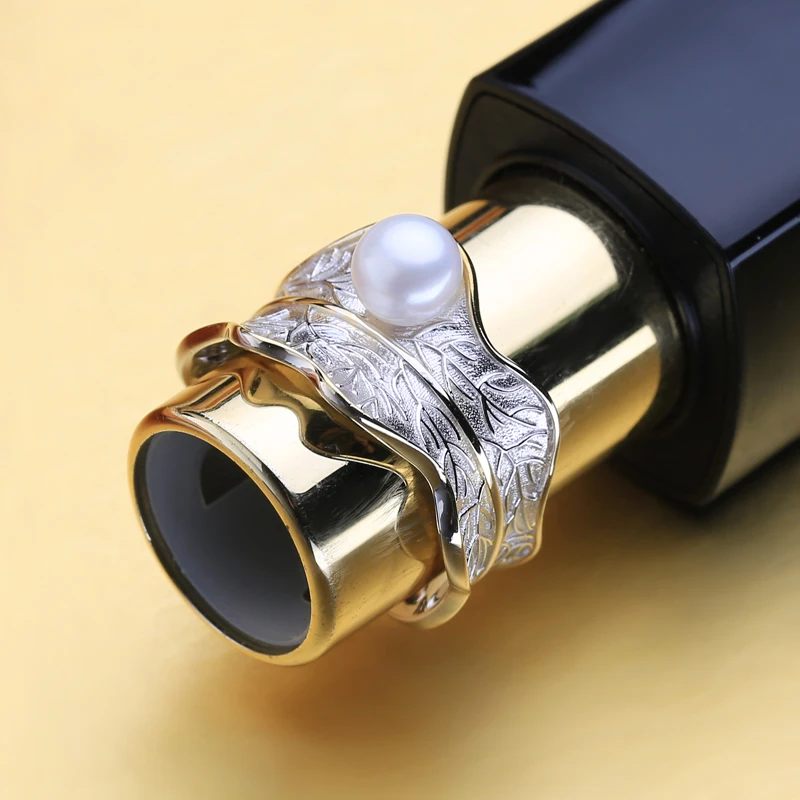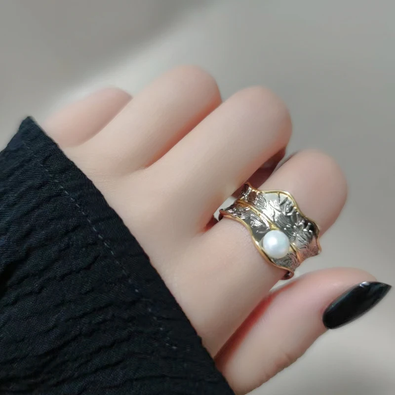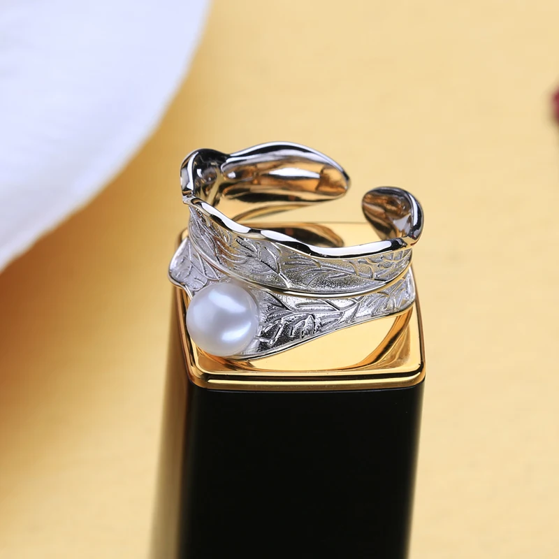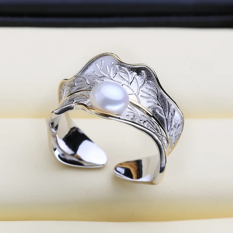 Bague perle d’eau douce sur anneau en forme de feuille, une touche de raffinement pour toutes les occasions