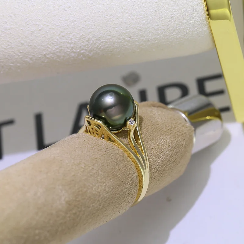 Bague perle d’eau douce noire 9-10 mm, anneau couleur or : Élégance et Raffinement