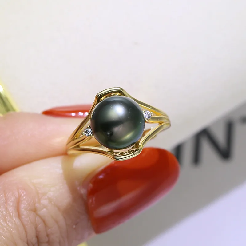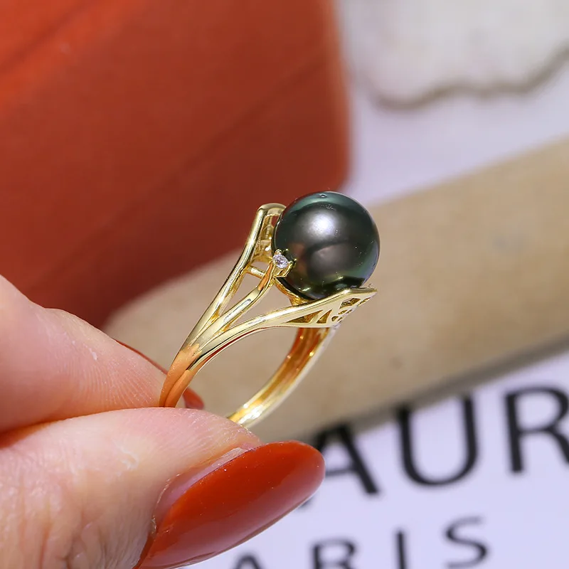 Bague perle d’eau douce noire 9-10 mm, anneau couleur or : Polyvalence et Style Unique