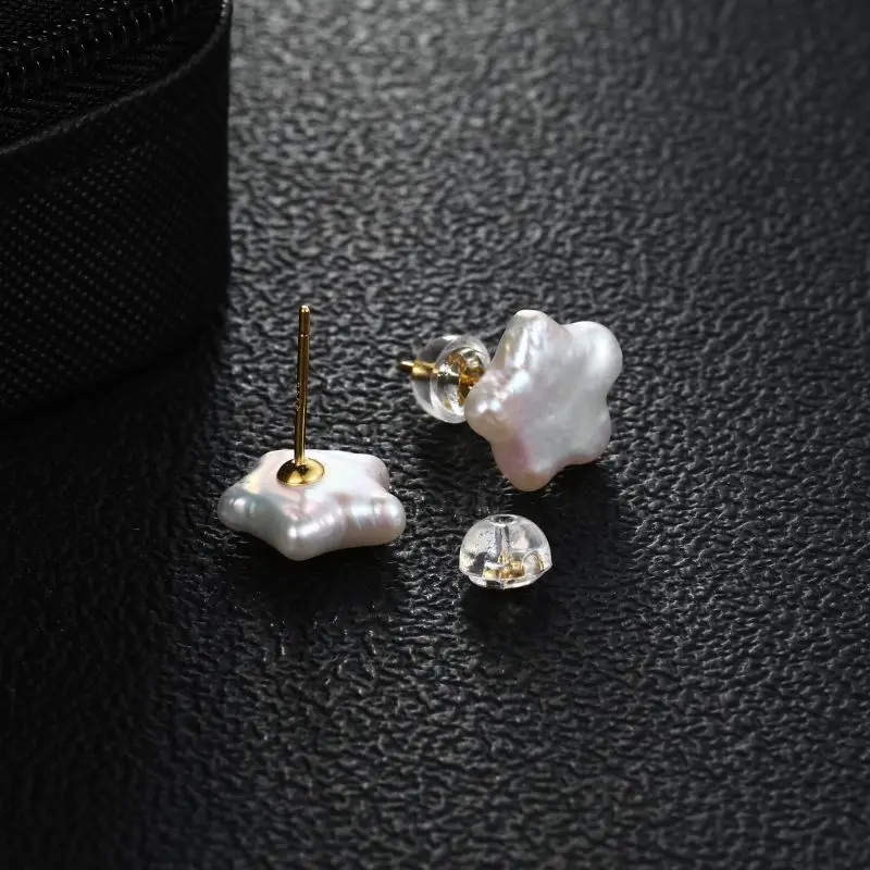 Un style audacieux avec les boucles d’oreille à clous perle d’eau douce baroque en forme d’étoile