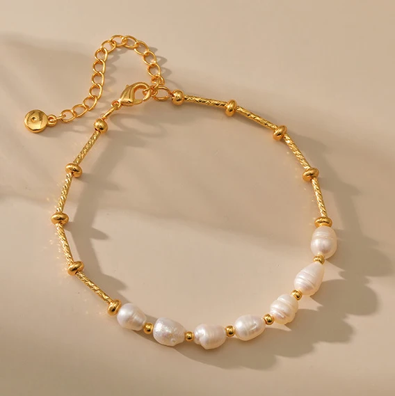 Éclat intemporel du Bracelet fashion perle d’eau douce, chaîne couleur or
