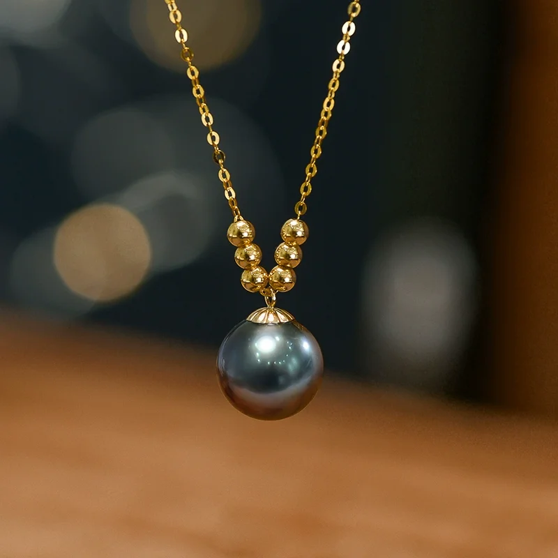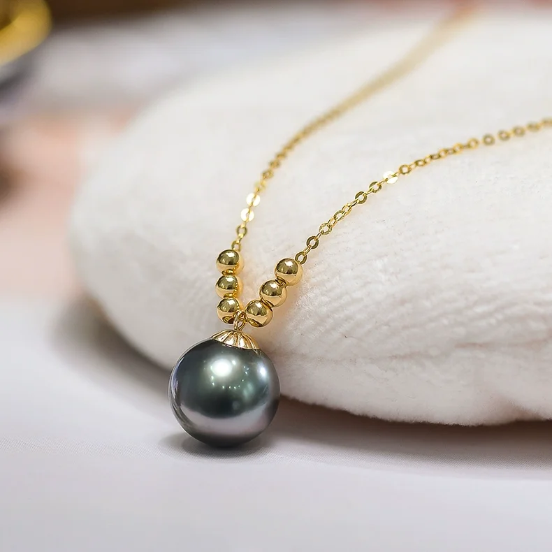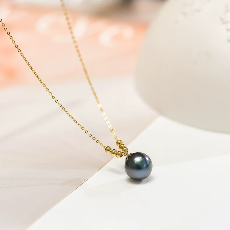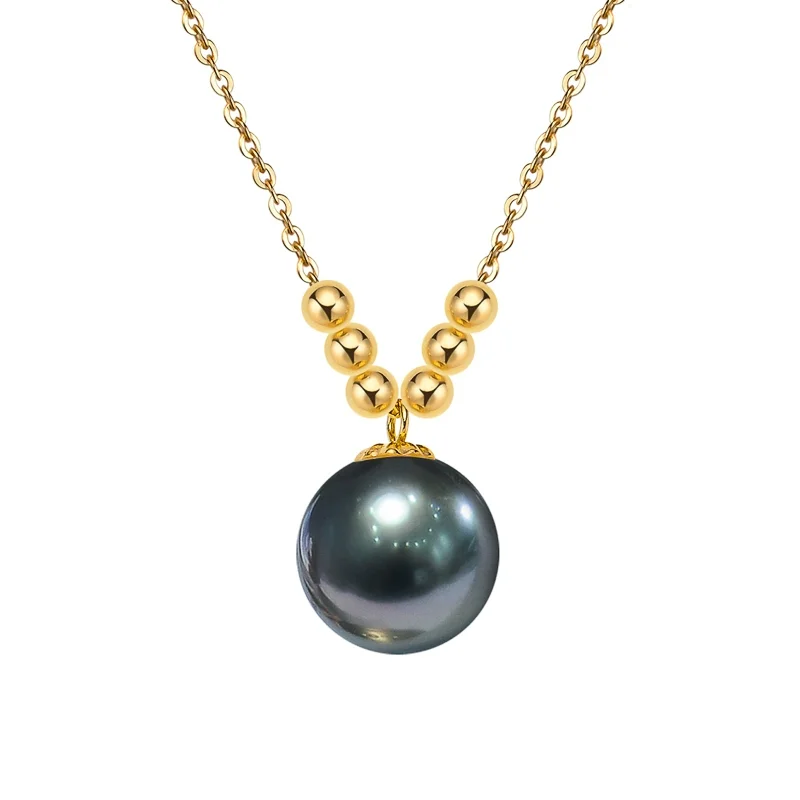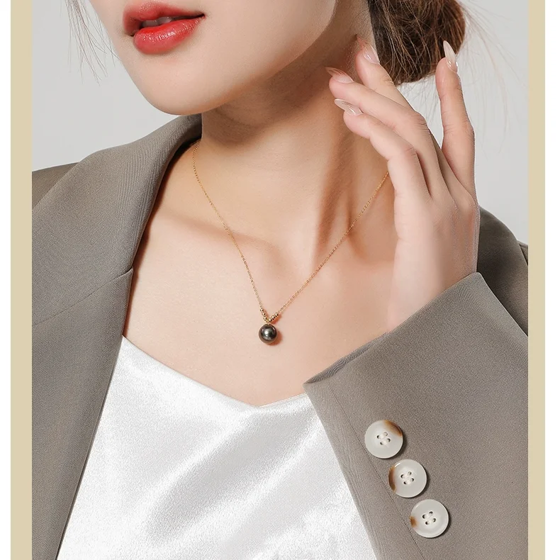 Une élégance intemporelle avec le collier à chaîne couleur or avec pendentif en perle noire naturelle de Tahiti