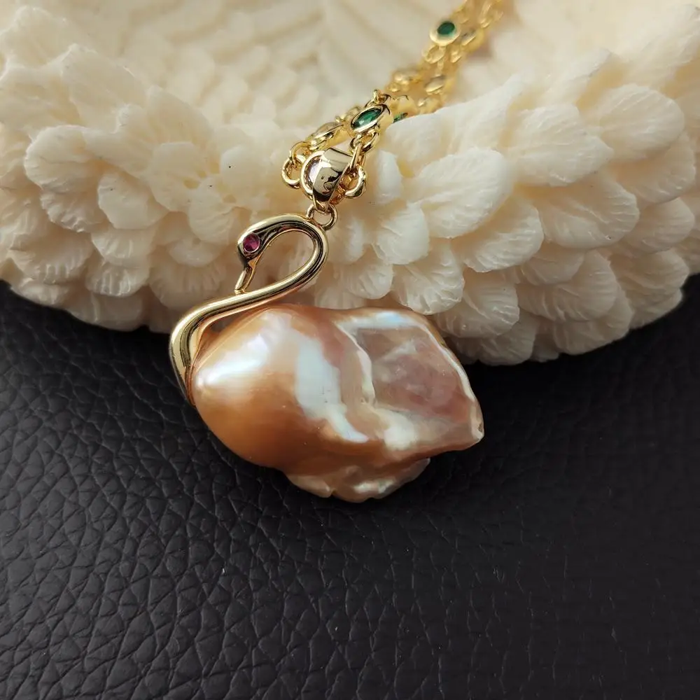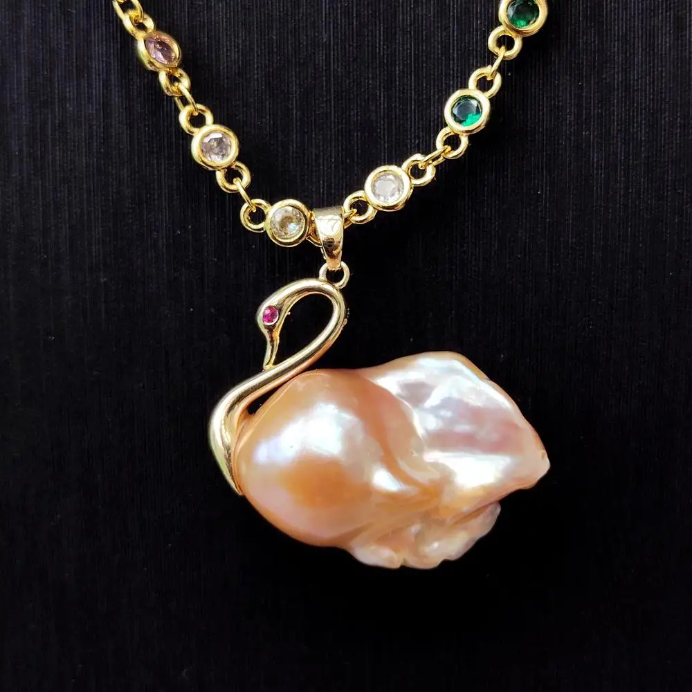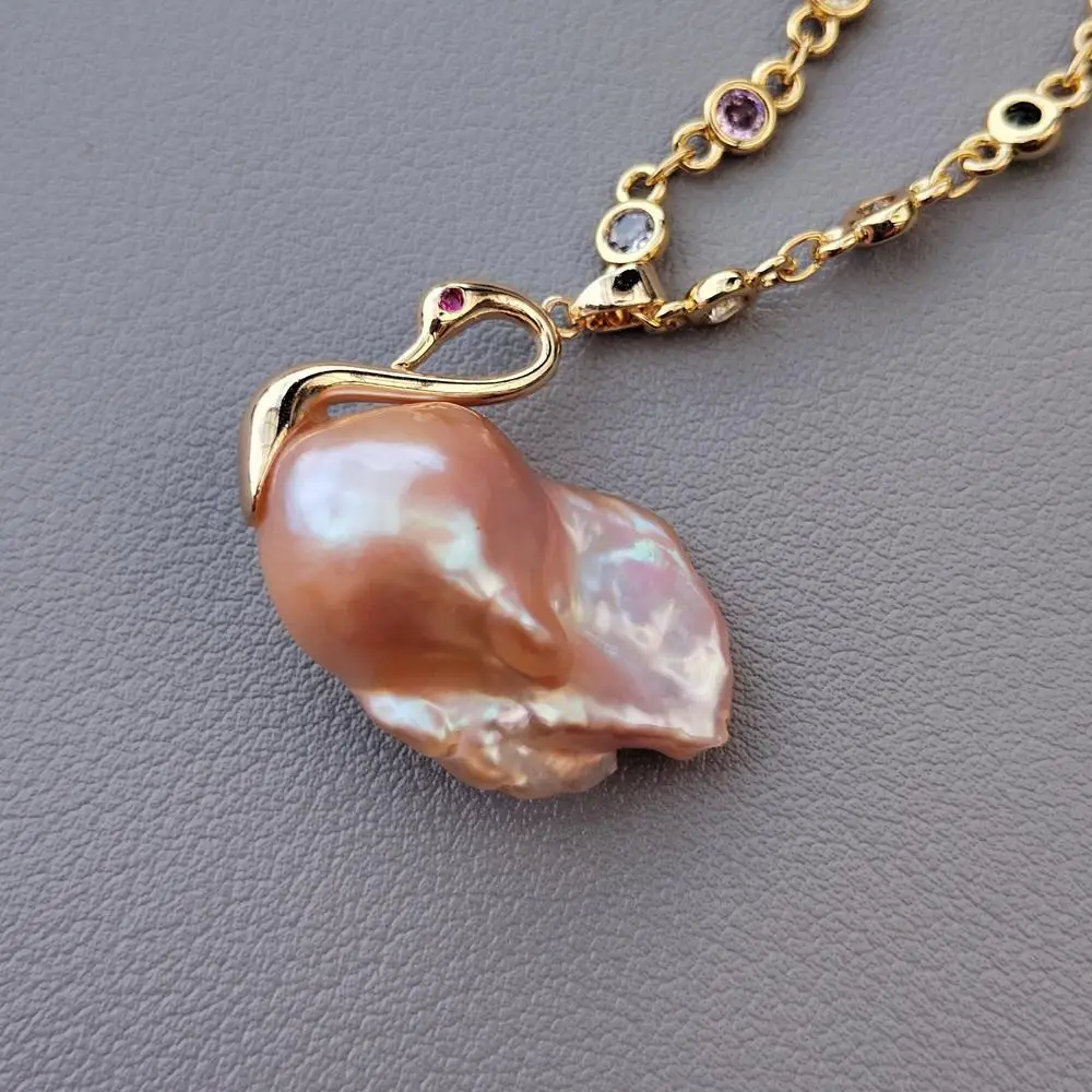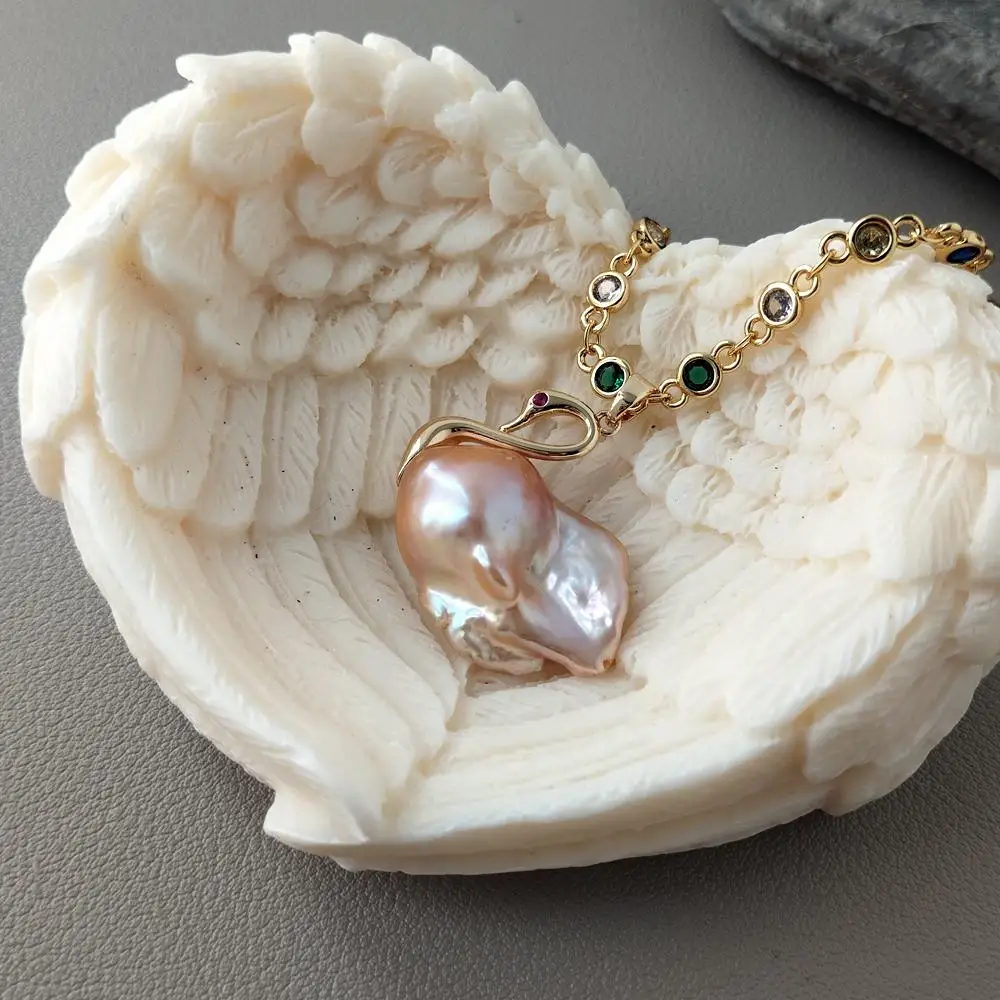 Collier avec pendentif de perle d’eau douce rose en forme de cygne, un bijou unique