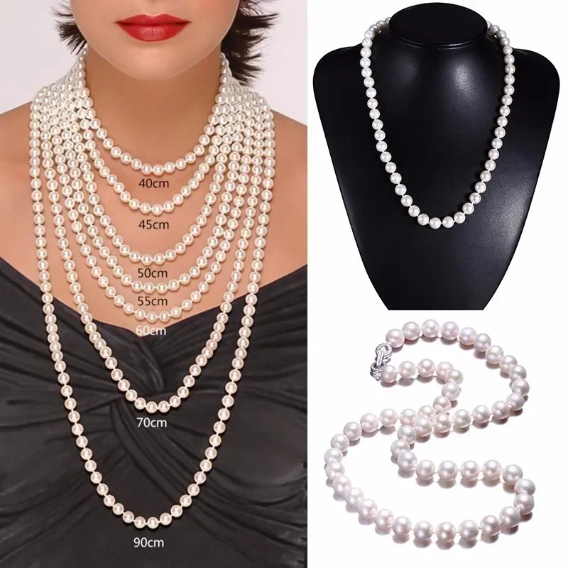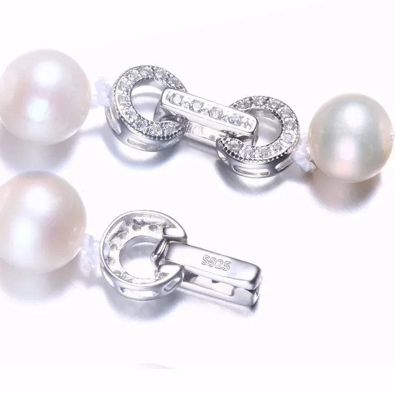 L’élégance du Collier perle d’eau douce ronde blanche 8-9 mm, chaîne couleur argent