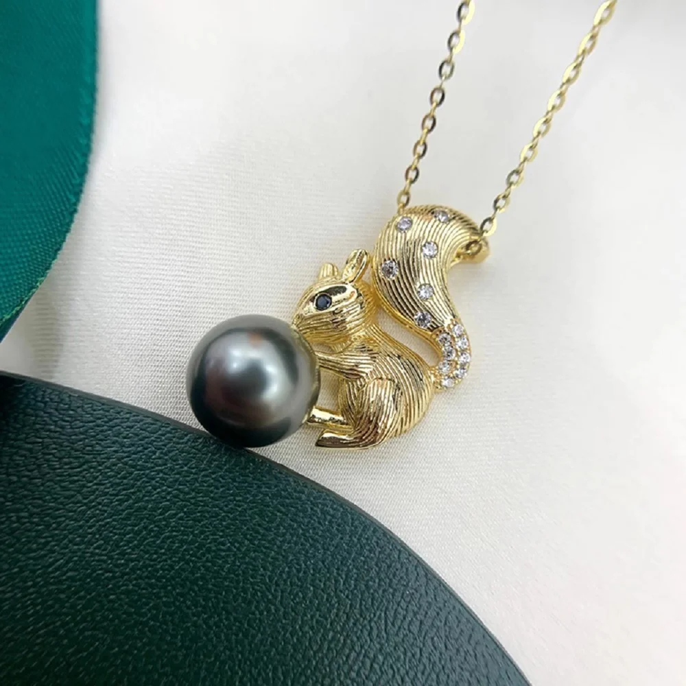 Exprimez votre personnalité avec le collier raffiné avec pendentif écureuil de perle de Tahiti 9-10 mm