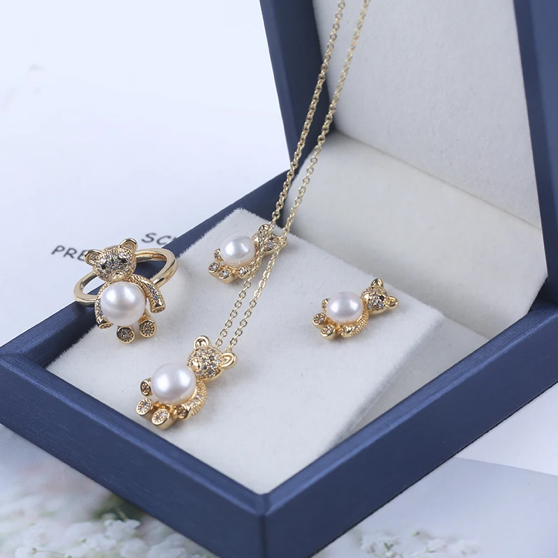 Offrez la Parure perle d’eau douce en forme de bouton blanc sur ourson et marquez les esprits